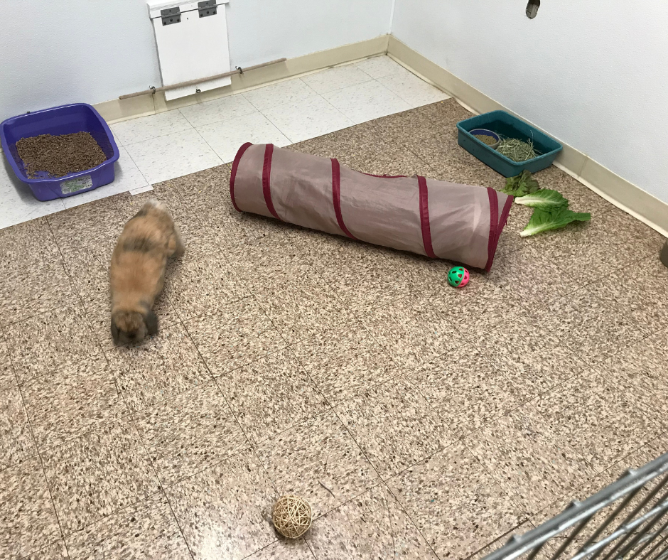 - A. Suites: 6’X2’pen lined with paper and bedding (spot cleaned and completely changed as needed) litter box with walnut pellet litter, timothy hay blend, ceramic food and water dishes, Sunseed or Oxbow pellets, fresh veggies, and chew toys 1-2 rabbit occupancy
