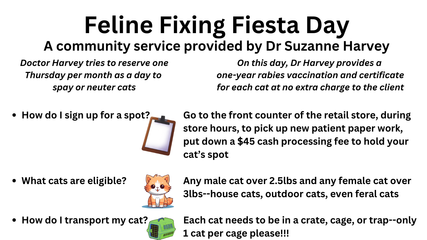 Excellent, affordable vet care is Dr. Harvey’s specialty. Check out our basic service options and pricing. Come in to schedule your pet’s first visit with Dr. Harvey